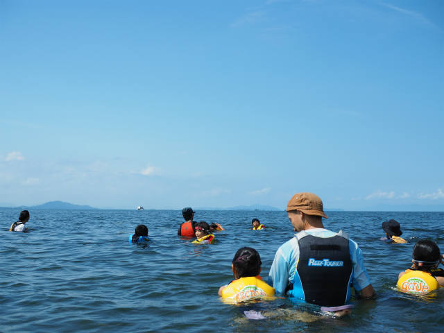 陸から結構離れても、大人の腰~みぞおちくらいの水深