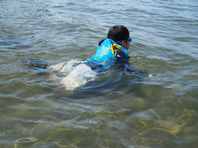 『ライフジャケット着てるから今日は潜るの難しいね』