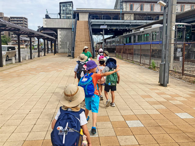 長浜駅前で、お母さんやお父さんに手を振って、ハラハラドキドキ、出発進行です。