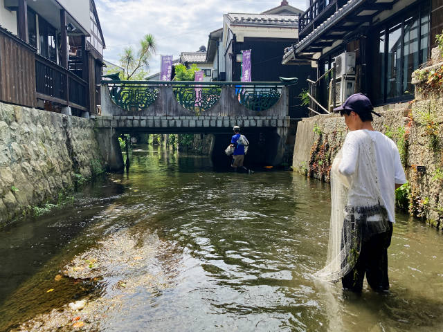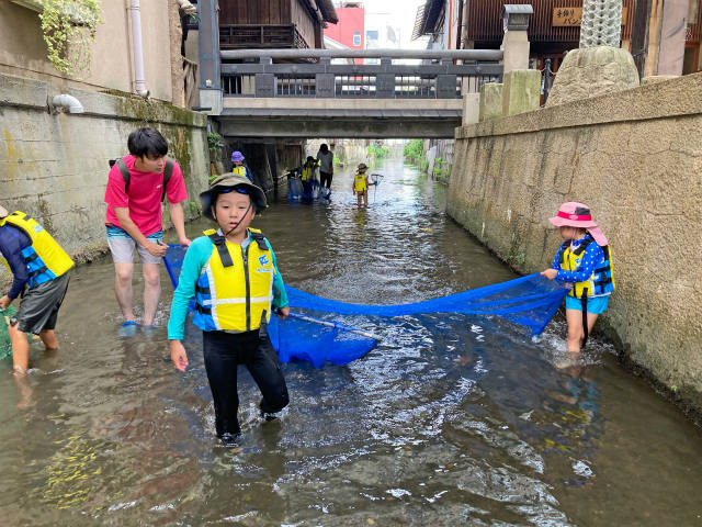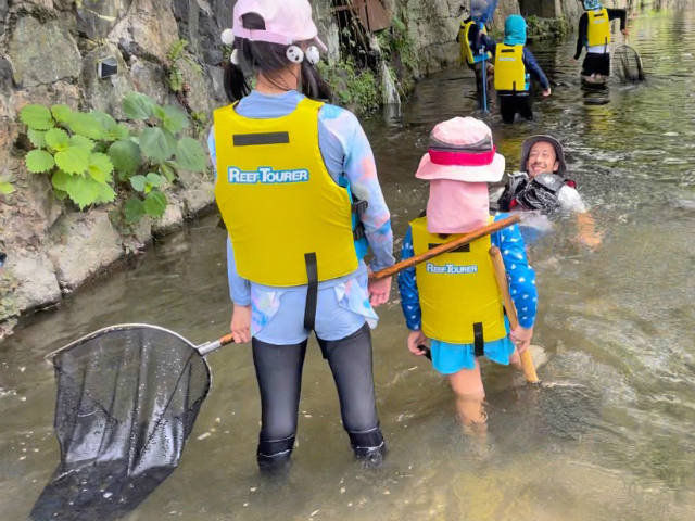 まずは1人1つ網を持ってザブザブガサガサ。