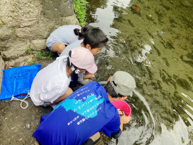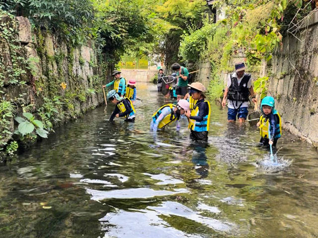 スピードで勝負をしている子、足でガサガサする子、それぞれ自分なりのやり方で生き物獲り。一人一人のやり方を見ているとユニークでおもしろいです。