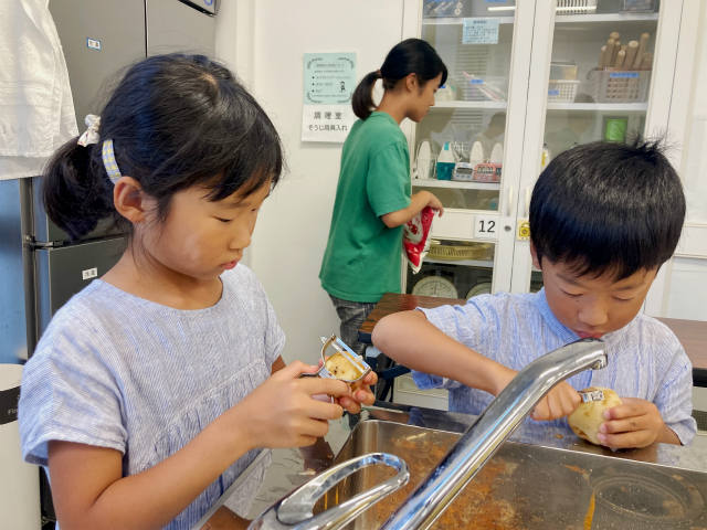 お魚だけじゃお腹いっぱいにならないので、ジャガイモを剥いて、カレーを作ります。