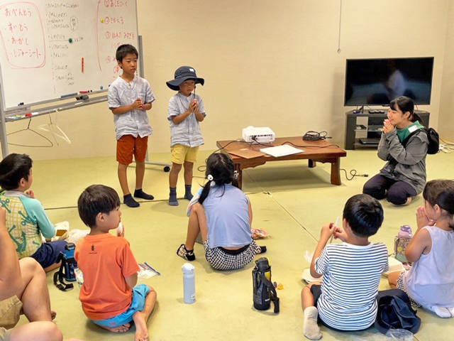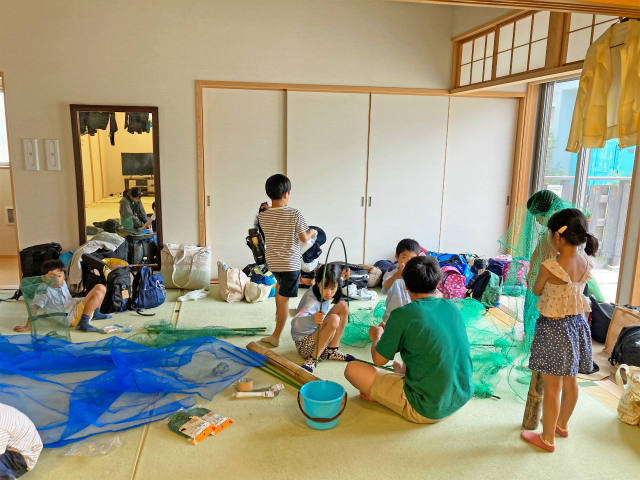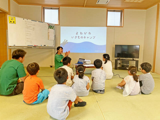 荷物を置いて、『米川生き物キャンプ』のルール説明を受けます。