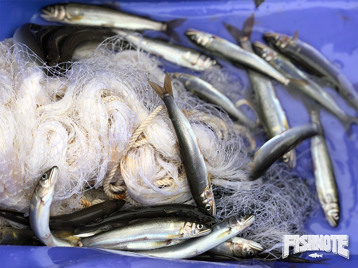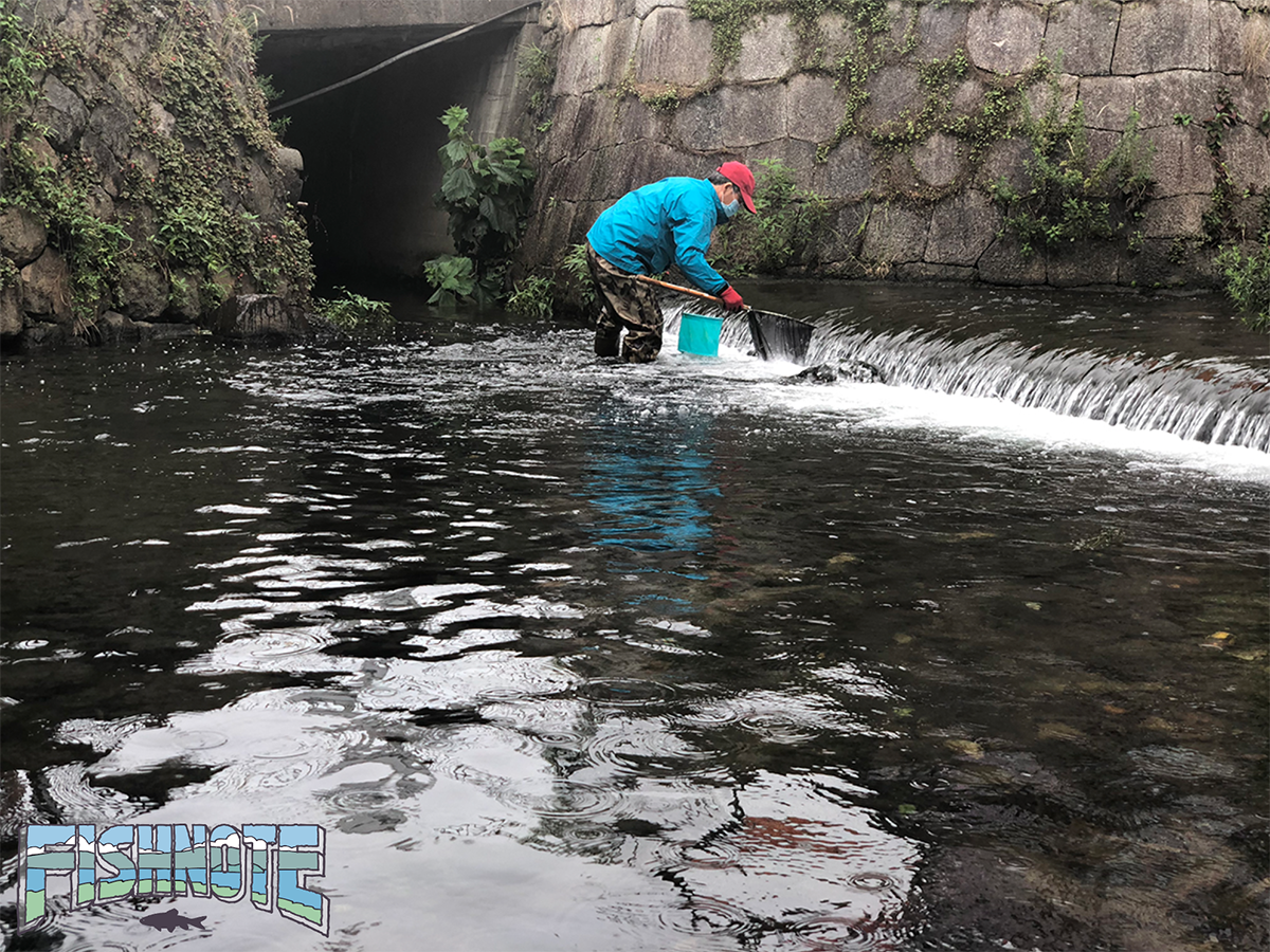 「ちょうどいいくらいじゃないか?」と網を投げ入れてみる。