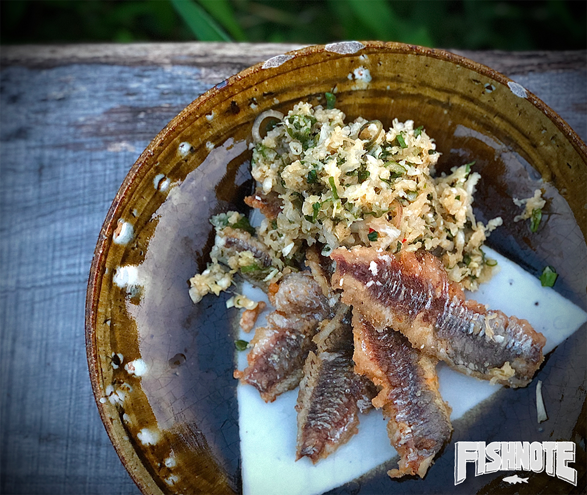 ケタバスの竜田揚げオイルソース掛け。